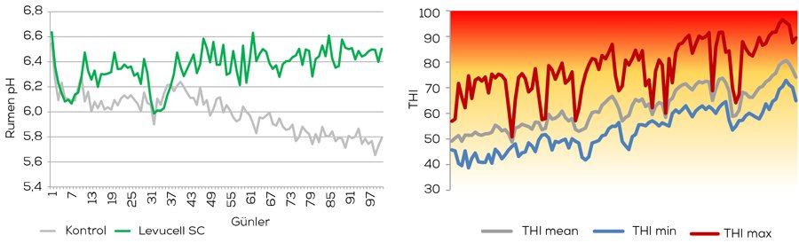 S. cerevisiae CNCM I-1077, LEVUCELL SC, özellikle hayvan sıcaklık stresi koşulları altındayken rumen pH’ının dengelenmesine yardımcı olur.