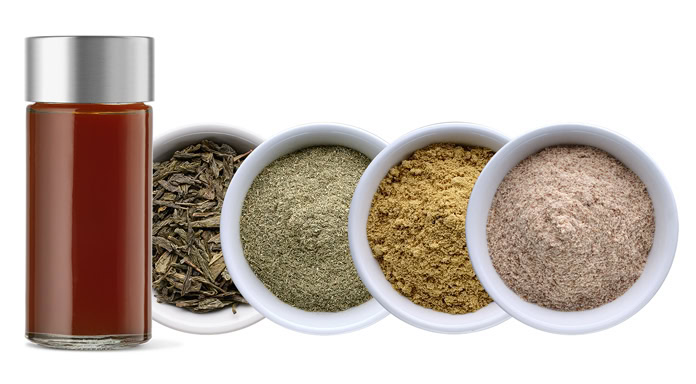Şekil 1’de gösterilen üç bitkisel ekstrakt, şirket içi bir çalışma kapsamında farklı stres koşulları altında test edilmiş ve temel biyoaktif maddelerinin stabilitesi açısından değerlendirilmiştir. Bu ekstraktların bir karışımı (yüzde 1 zerdeçal, yüzde 1,5 yeşil çay, yüzde 1,5 zeytin yaprağı), basitleştirilmiş bir yem matrisine eklenmiştir. Matris; bezelye proteini (%14), mısır nişastası (%16,5), lif (%1,5), kanola yağı (%7,5) ve sudan (%56,5) oluşmuştur. Bozulmayı araştırmak için Tablo 1’deki biyoaktif belirteçler seçilmiştir.