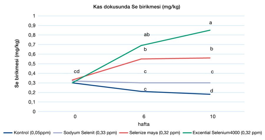 Takviye edilen rasyonların diyet selenyum seviyeleri eşit olmasına rağmen, selenyum birikimi organik kaynaklar için önemli ölçüde daha yüksek olmuştur ve en yüksek seviyeler saf L-selenometiyonin kaynağı (Excential Selenium4000, Orffa Addives) ile beslenen hayvanlarda gözlemlenmiştir. Bu sonuçlar, L-selenometiyoninin hayvan beslemede neden doğal ve güvenli bir selenyum kaynağı olarak bilindiğini ortaya koymaktadır.