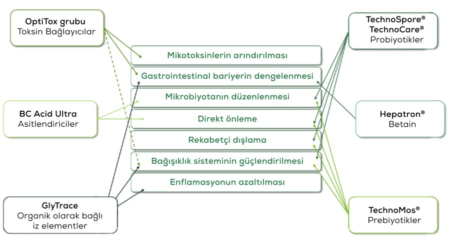 Etkili bir toksin yönetimi bağırsak bütünlüğünü, sağlığı, doğurganlığı, yem verimliliğini korur ve antibiyotik tedavilerine olan ihtiyacı azaltır. Bu da bir yandan ekonomik verimliliği korurken diğer yandan sürdürülebilirlik, dayanıklılık ve hayvan refahı gibi önemli hedefleri destekler.