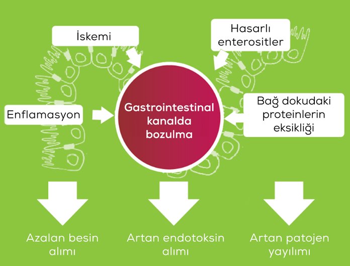 Yüksek kaliteli probiyotikler ve prebiyotikler hassas mikrobiyomu olumlu yönde düzenler ve bağırsak epitelinin direncini güçlendirir. Gram-negatif bakterilerin çoğalmasını kontrol ederek serbest endotoksinlerin azaltılmasına katkıda bulunurlar ve toksijenik bakterilerin büyümesini kritik bir seviyenin altında tutarak önemli bir toksin üretiminin gözlenmemesini sağlarlar.